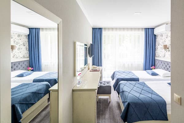 Дети до 6 лет без предоставления дополнительного места размещаются бесплатно. Стоимость дополнительного места уточняется при бронировании.